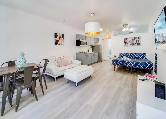 Le Marché de Bayside se trouve à proximité du domicile de 38 m², tandis que le Musée Wolfsonian-Florida International University est dans une zone de 1 km. L'appartement Beachfront 1 Bedroom With 2 Queen Beds On Ocean Drive est à moins de 1 km du centre-ville, et le parc Soundscape est à une distance de marche. L'avenue Collins se trouvent également assez proche de la résidence.